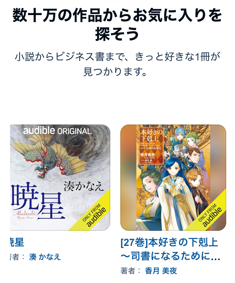 Audibleってどんな感じで聴けるのか確認するために、その右側の
