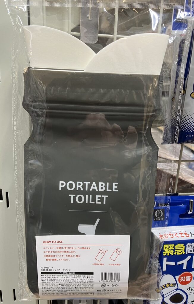 そんな時のために、携帯トイレや簡易トイレと言った非常用トイレが100均でも売っています。
