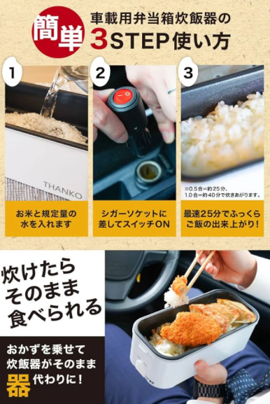 【THANKO】車中泊で炊き立てご飯「車載用12V弁当箱炊飯器」TKLUN21W【シガーソケット電源】