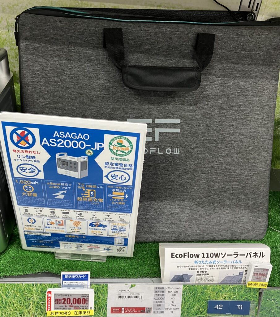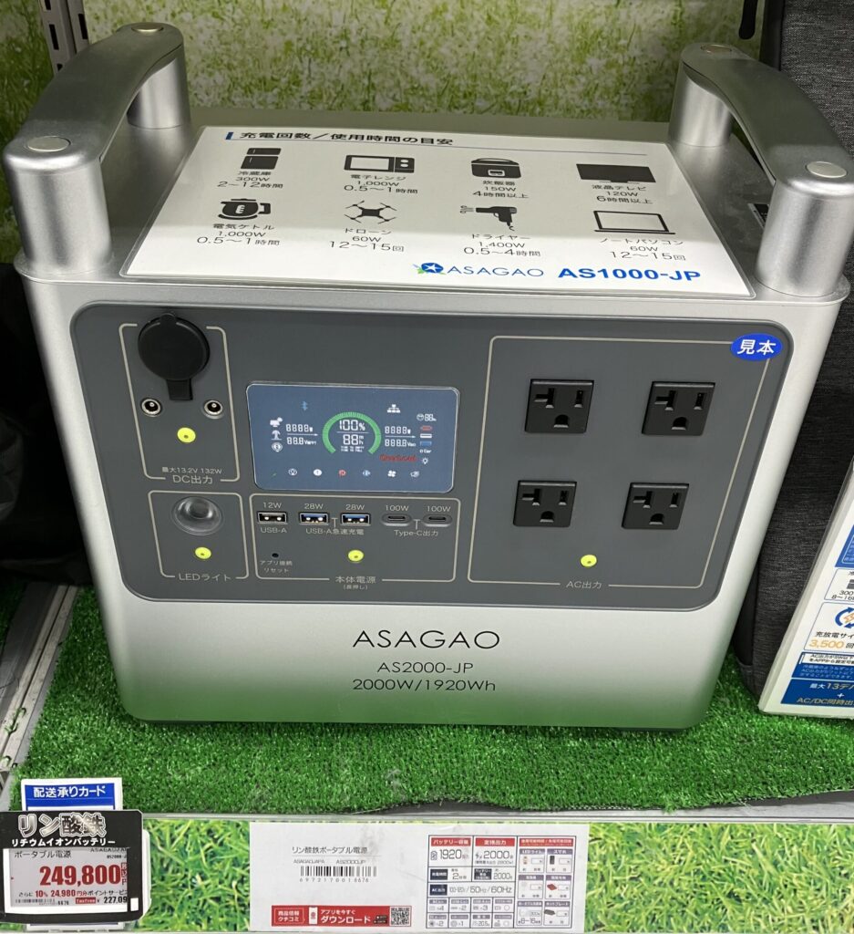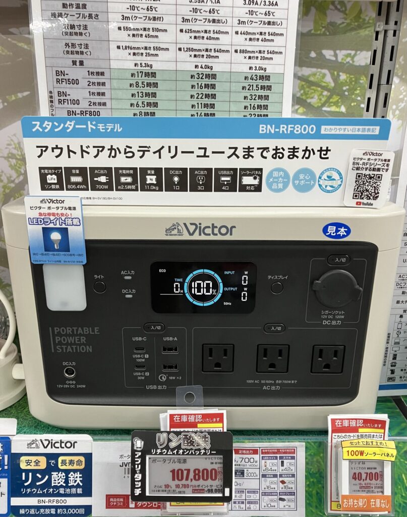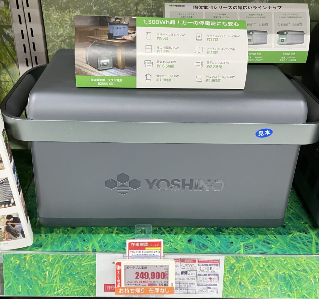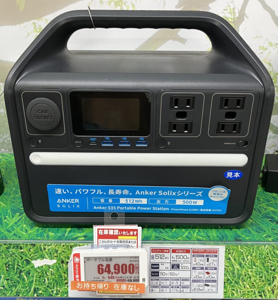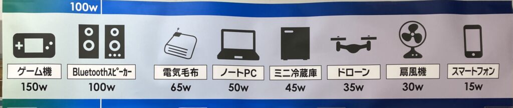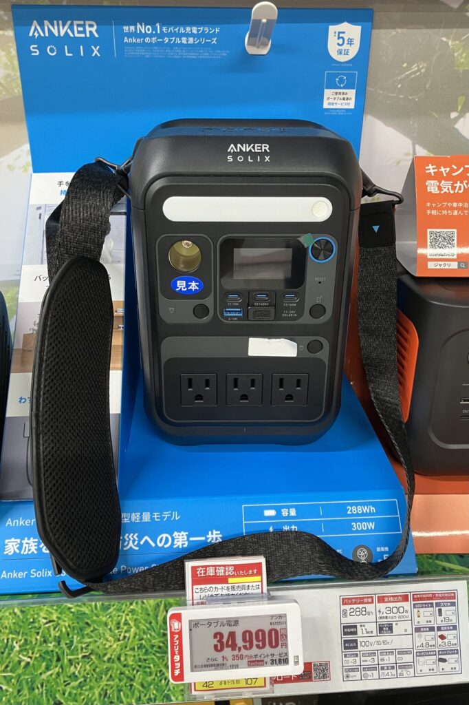 専用のポータブル電源売り場があり、こんな看板が天井からぶら下がっていました。