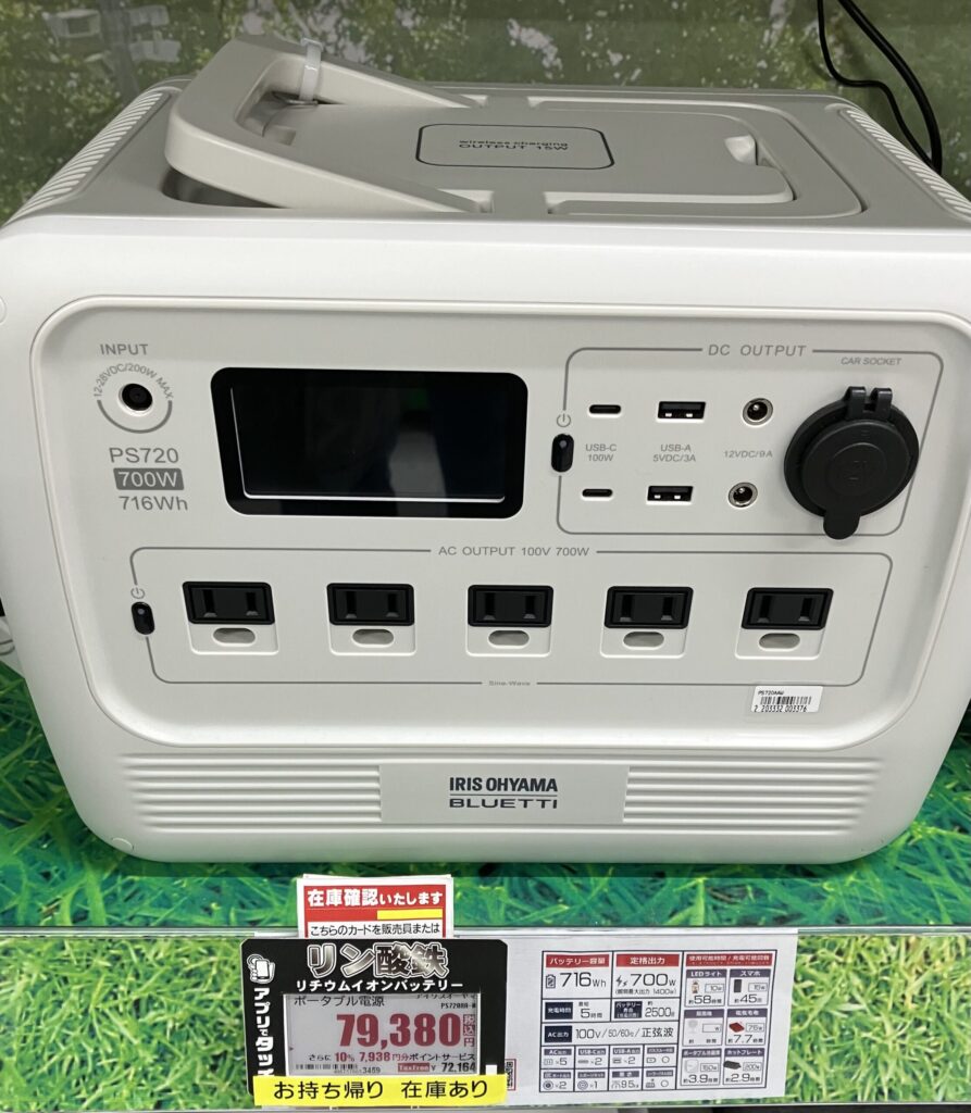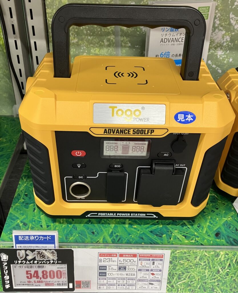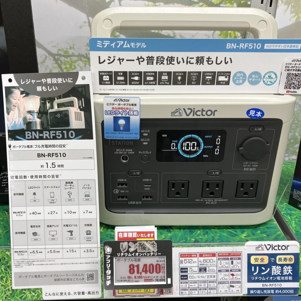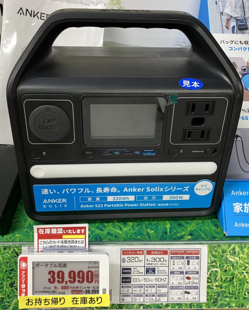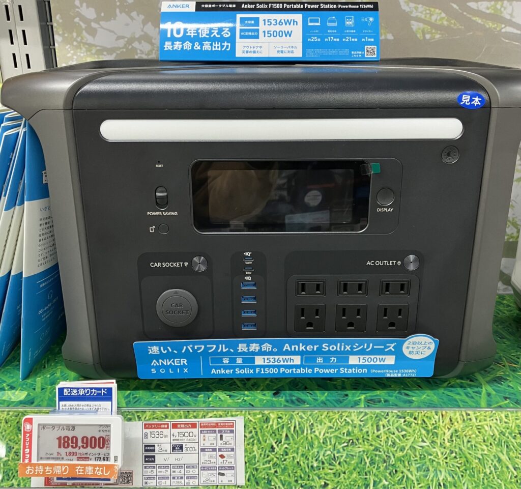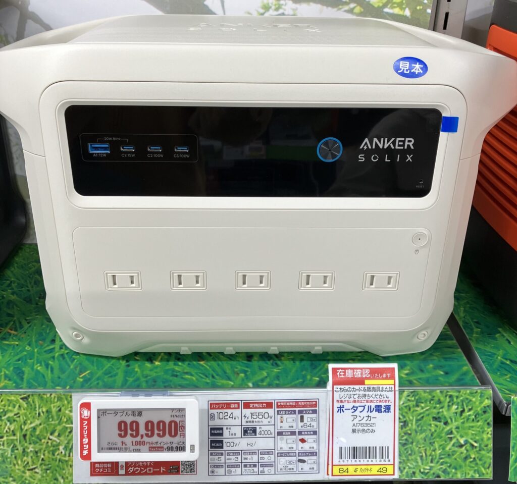 専用のポータブル電源売り場があり、こんな看板が天井からぶら下がっていました。