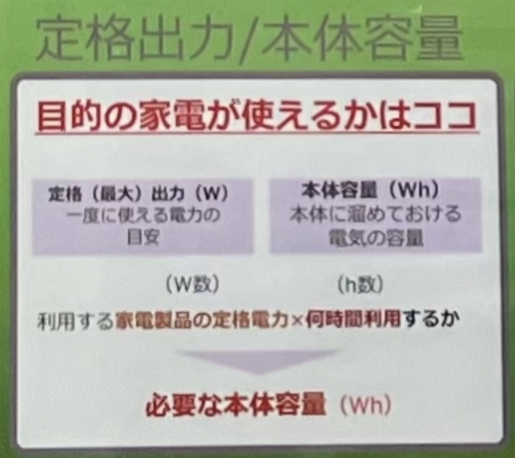 簡単に言えば、どんな家電を何時間使うかによって、どれだけの容量が必要かが決まります。