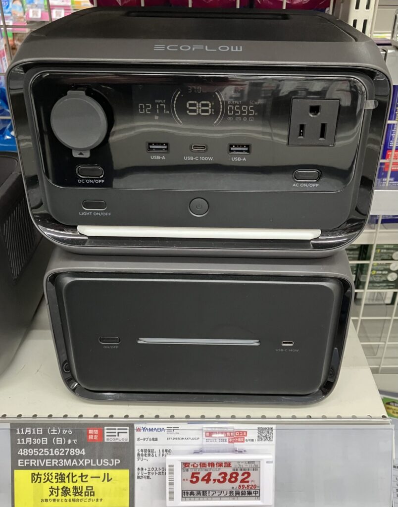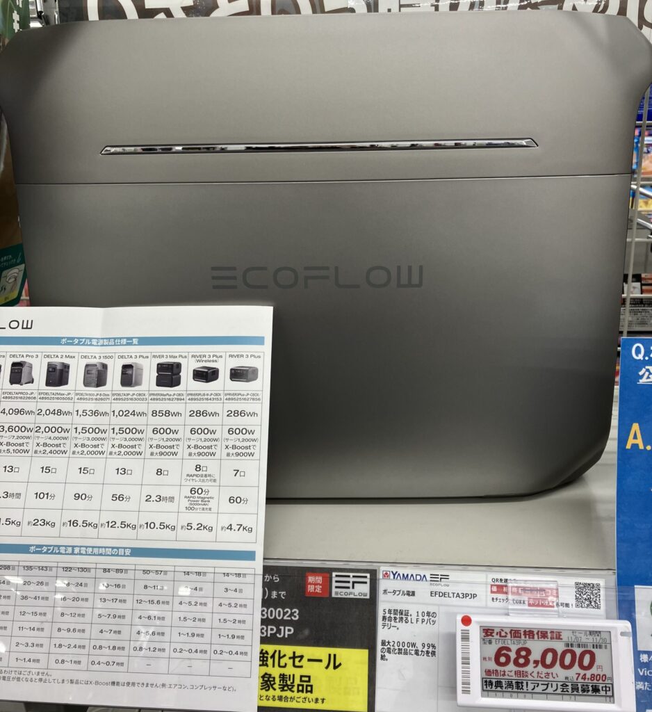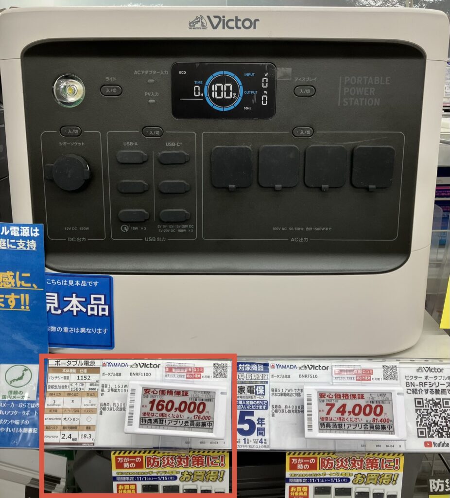 ヤマダデンキには、通常、家電製品を探しに行くので、ポータブル電源は目に入らないことが多いでしょう。