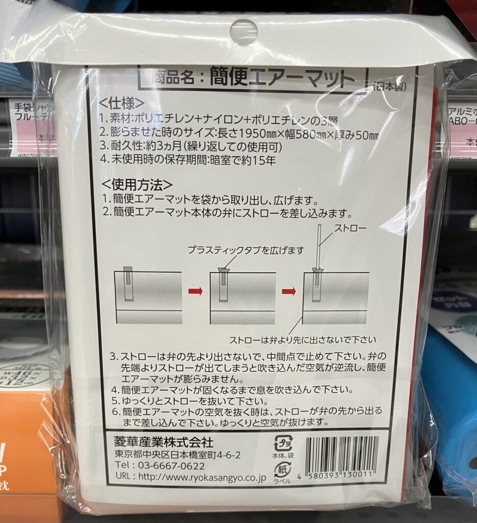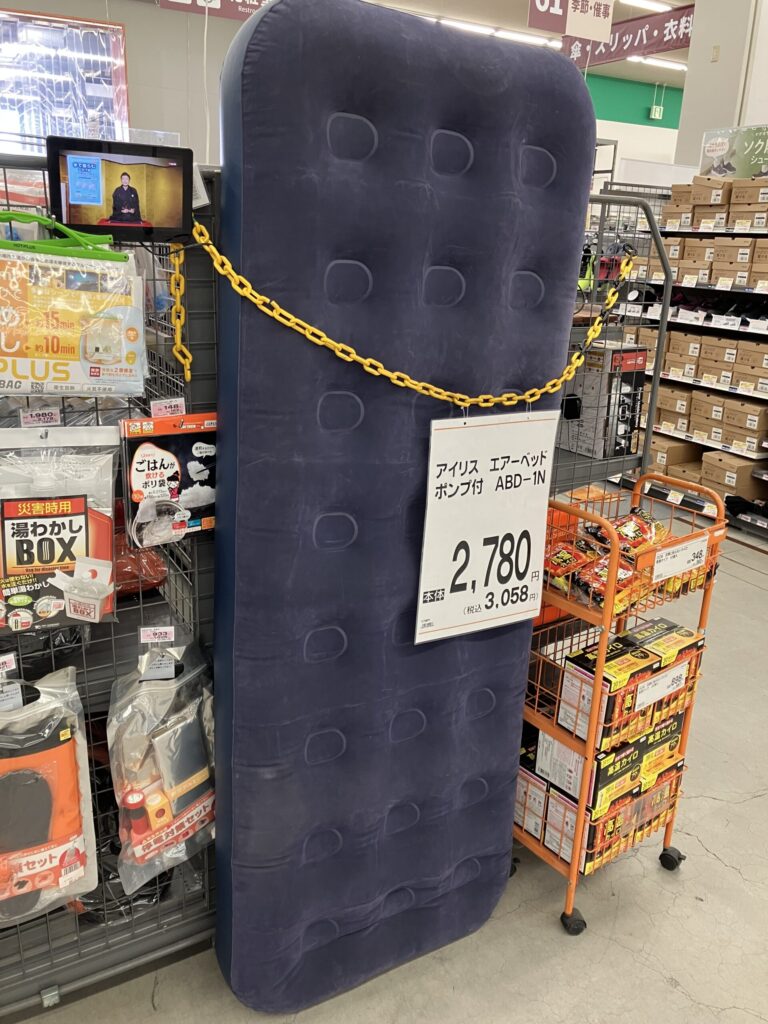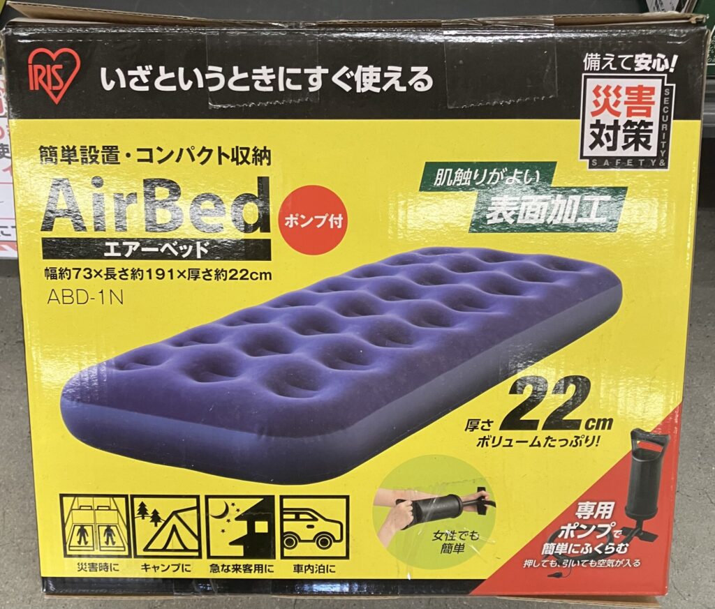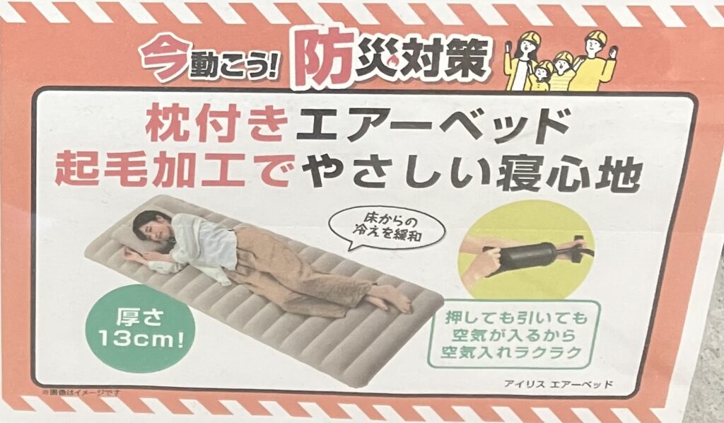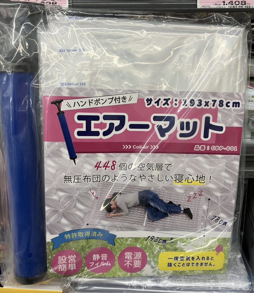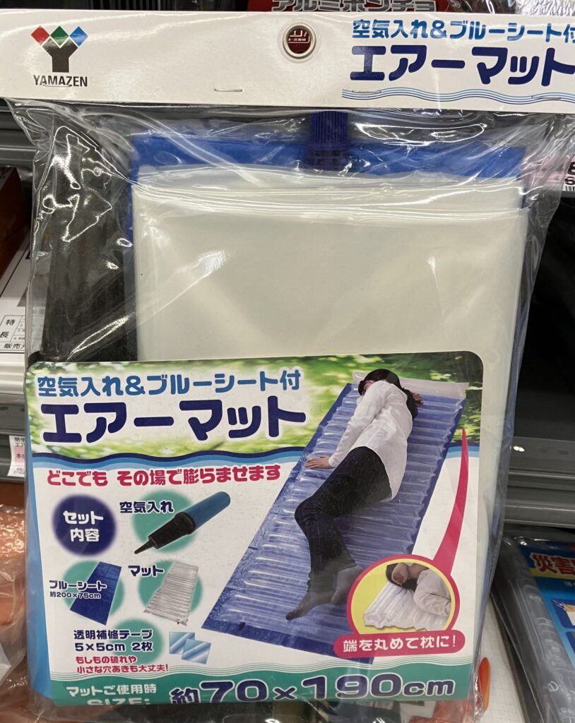 そこで、ここでは、実際に100均やホームセンターで売っていた防災用エアーマットやエアーベッドについてご紹介します。