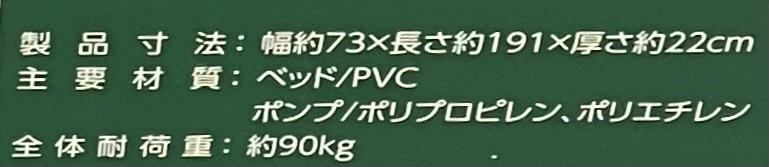幅約73x長さ約191x厚さ約22cm - 主要材質: