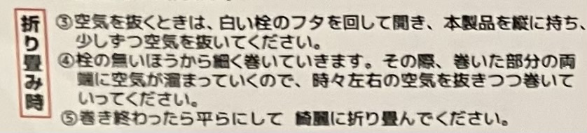 空気が抜けたら、折りたたんで「コンパクトに収納」できます。