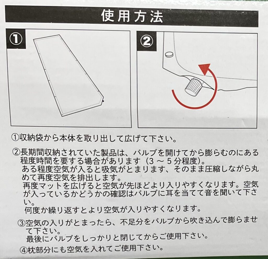 ※膨らませる空気の量でマットの硬さの調節ができます。