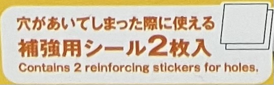 穴があいた時に使える補強用シールが2枚入っているので安心です。