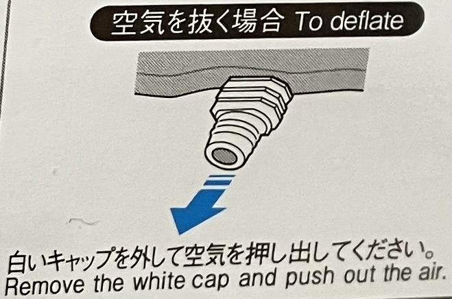 上の写真の左側にあるバルブのキャップを外します。(浮き輪と同じ感じです。)