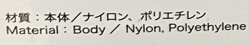 | 材質 | 本体/ナイロン、ポリエチレン |