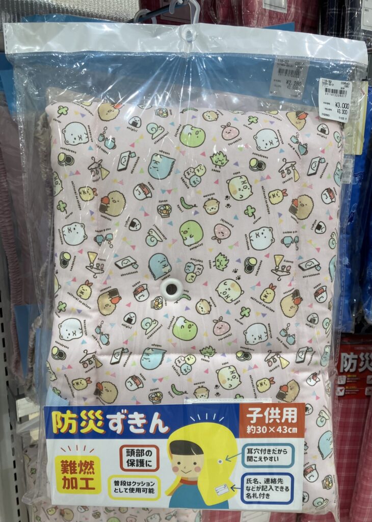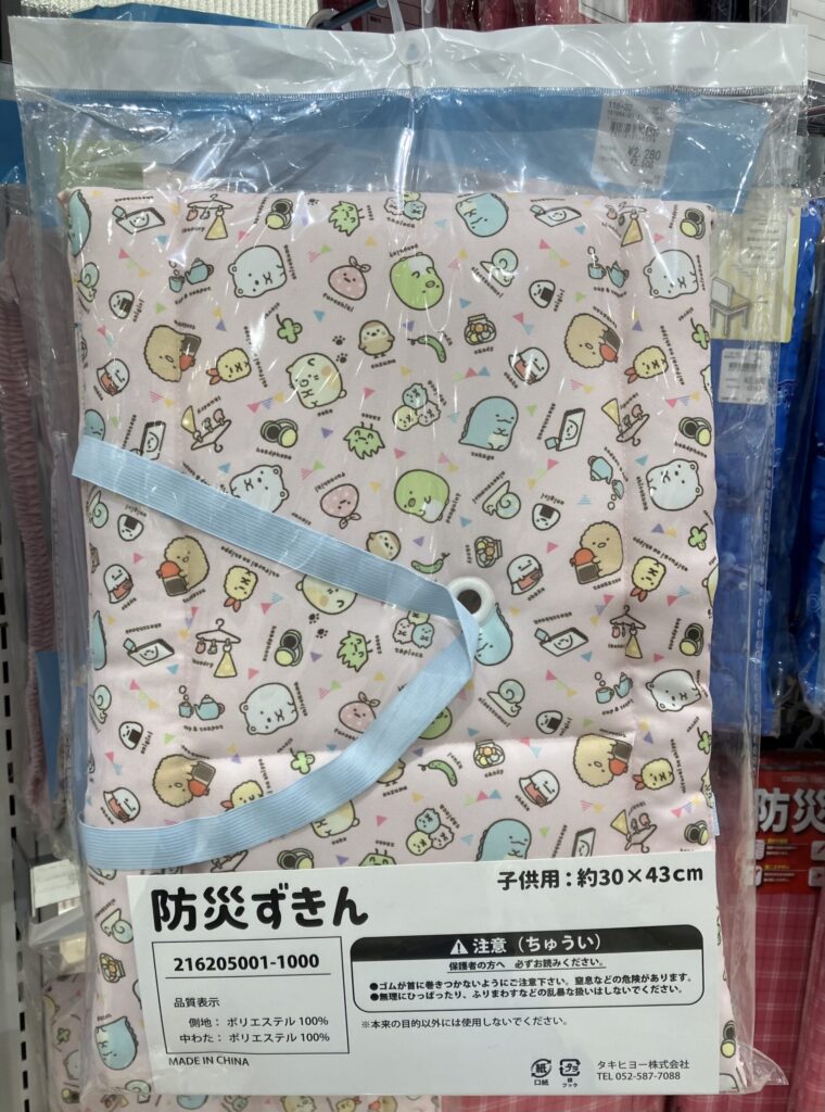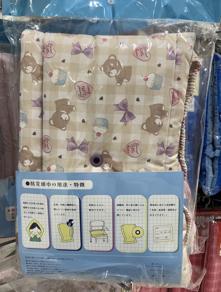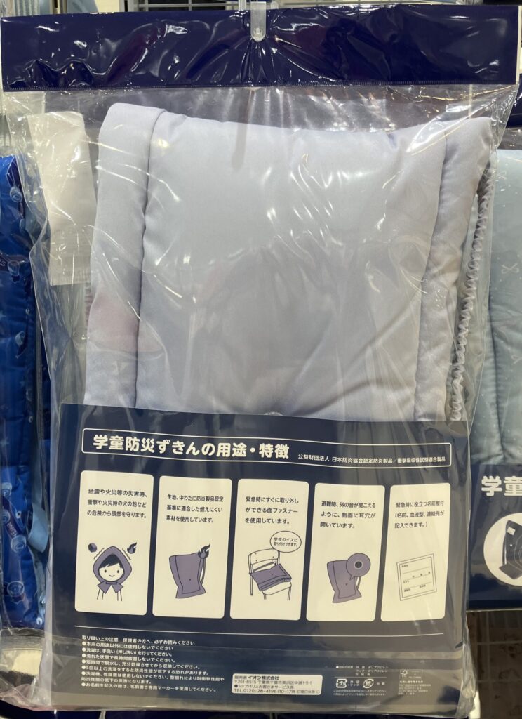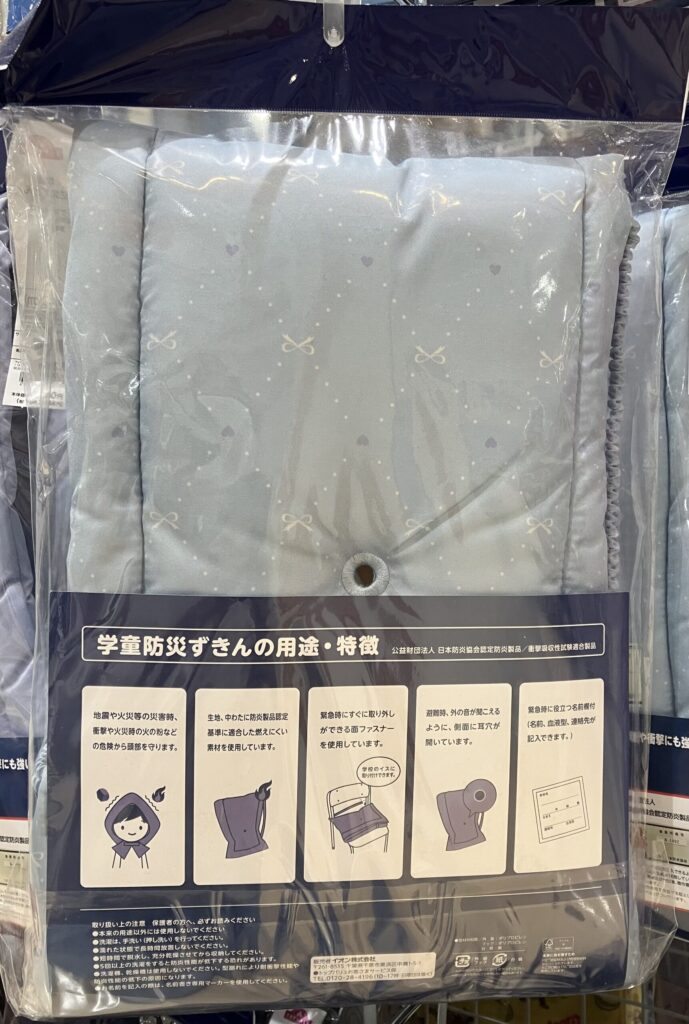 まずは、イオンの店舗で売ってた防災頭巾をご紹介。