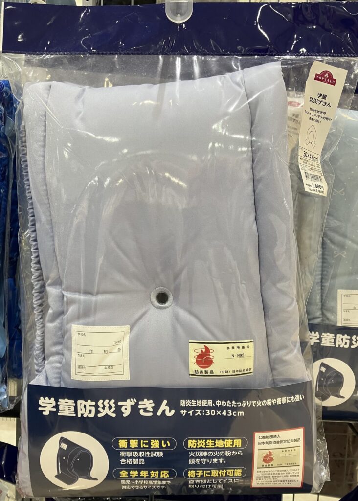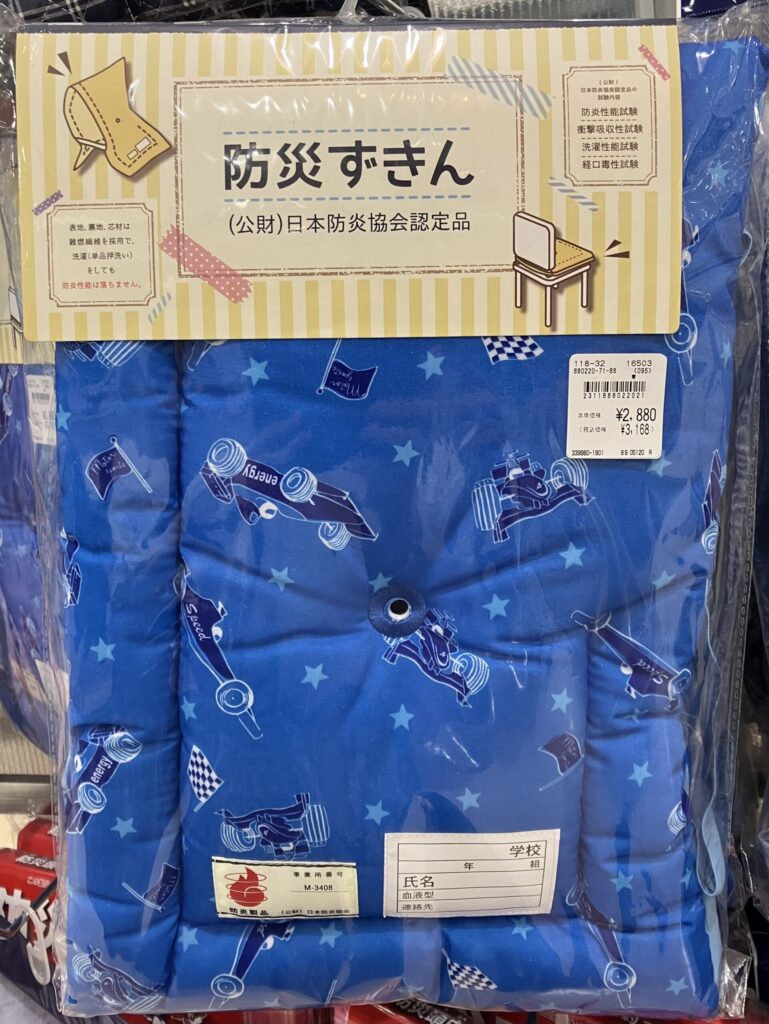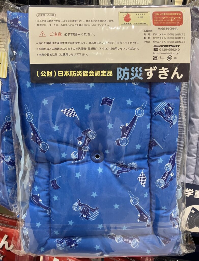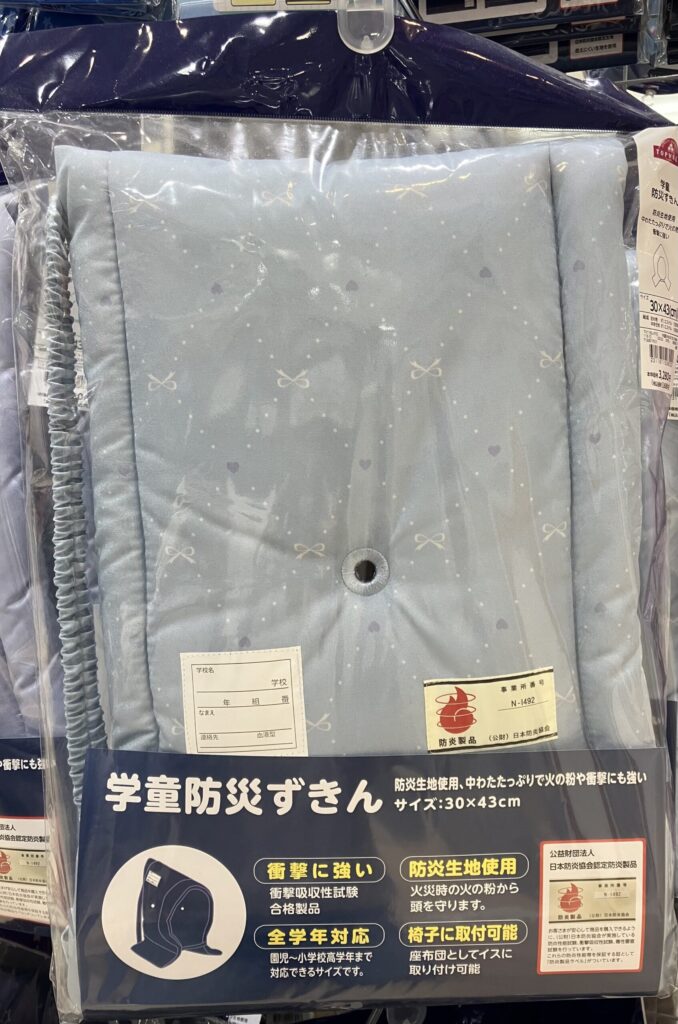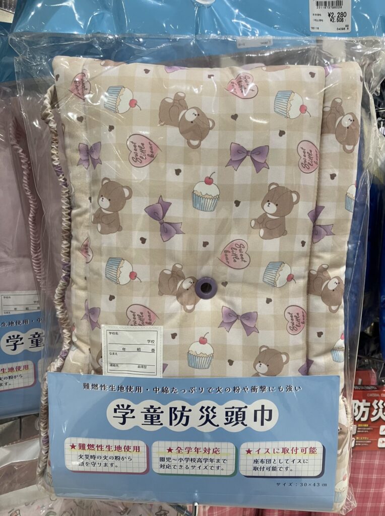 まずは、イオンの店舗で売ってた防災頭巾をご紹介。