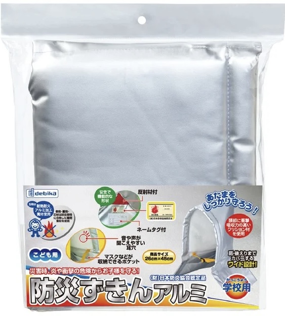 防災製品全般に使われるもので、防災頭巾に使われるケースは少数派ですが、こちらも参考になります。